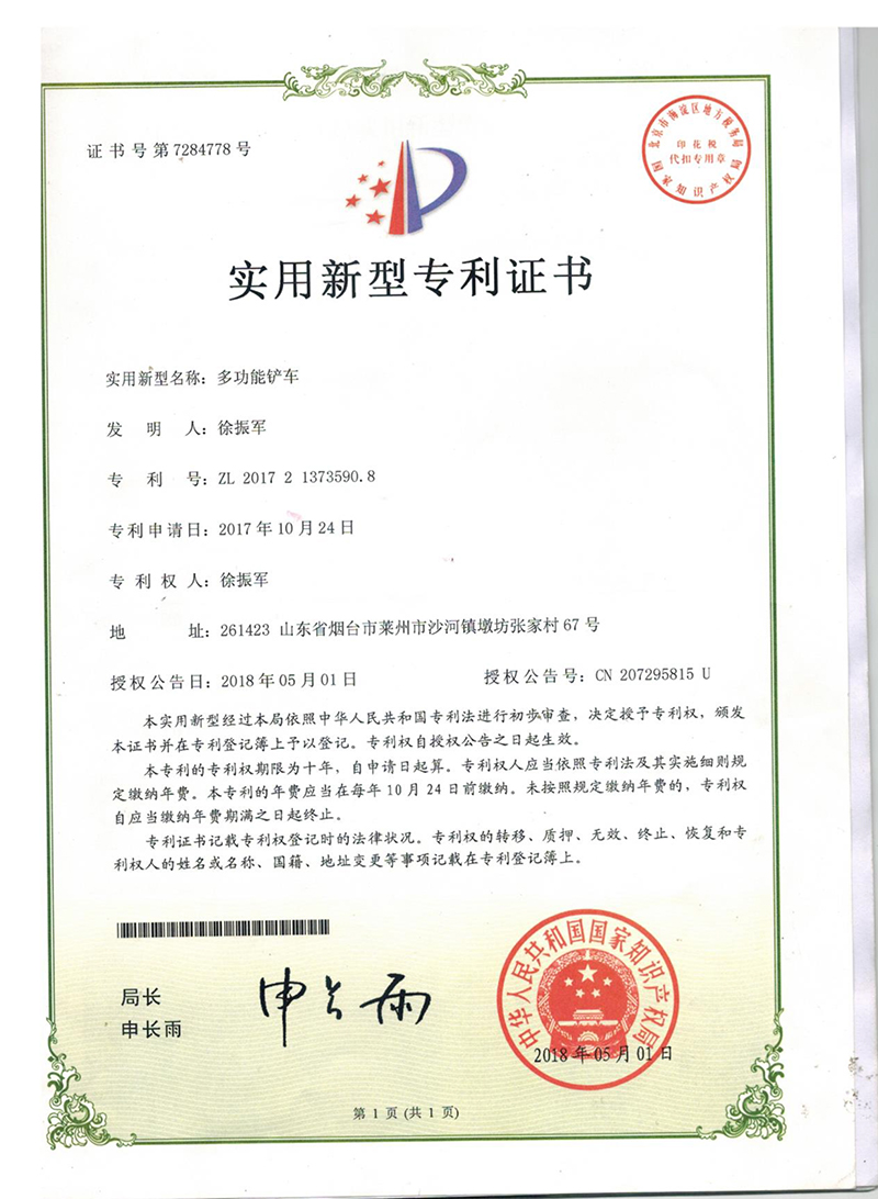 • 開啟兩頭忙、攪拌斗裝載機的研發(fā)與生產(chǎn);斬獲“多功能鏟車”“抓吊挖一體機”兩項國家專利;同年,公司正式更名為萊州巨浪機械有限公司,標(biāo)志著企業(yè)發(fā)展邁入新階段。